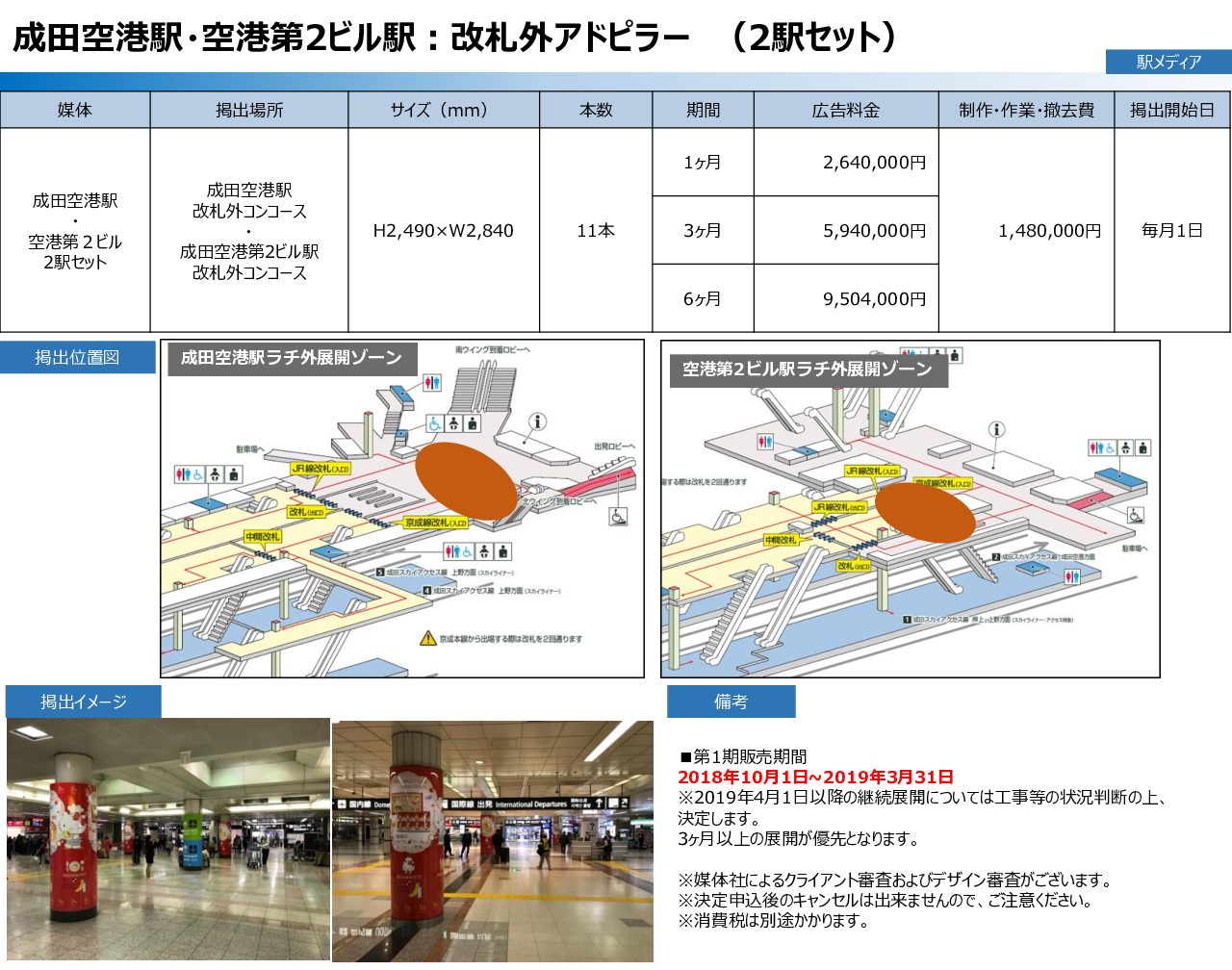 ホームメディア20181003_naritaairport 20181003_naritaairport 料金(税別) 掲出期間 こちらの商材を詳しく聞きたい方はコチラ ※空き状況は都度お問い合わせください。空きが無い場合は代替案を提案いたします。 詳細 沿線 料金(税別) 掲出期間 掲出開始日 面数 サイズ こちらの商材を詳しく聞きたい方はコチラ